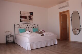 There are 4 large double rooms (40m2) and 2 roof suites (32 m2) and an additional guest house (80 m2) with 2 bedrooms, lounge and a bathroom and a view of the large pool. In total there is room for 16 persons, with extra beds up to 20 persons can spend their holidays in this great finca.